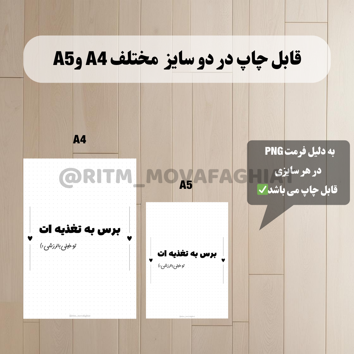 «من متخصص تغذیه نیستم و این ژورنال بهت نمیگه دقیقا چه چیزهایی رو به چه اندازه بخوری ! » بلکه این ژورنال با ایجاد سرگرمی بهت کمک میکنه مدیریت بیشتری روی تغذیه ات داشته باشی.کمک میکنه با ثبت اطلاعات مرتبط به تغذیه ات ببینی که داری مسیر درستی رو میری یا نه، و با انتخاب خودت عادتهای مضر غذا خوردنتو اصلاح کنی؛ اینجوری که میگی:( این ماه خیلی بی انرژی بودم😞) بعد یه نگاه به ژورنالت میکنی و میبینی چقدر غذای ناسالم وارد بدنت کردی و دفعه بعد بیشتر رعایت میکنی، یهو به خودت میای و میبینی سالم خوری برات شده عادت😌 و خیلی حال جسمی و روحیت بهتره 🌱.