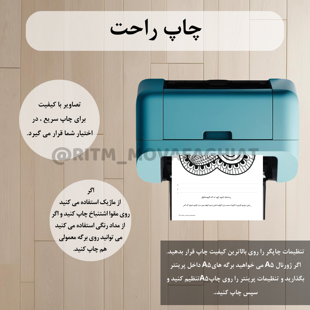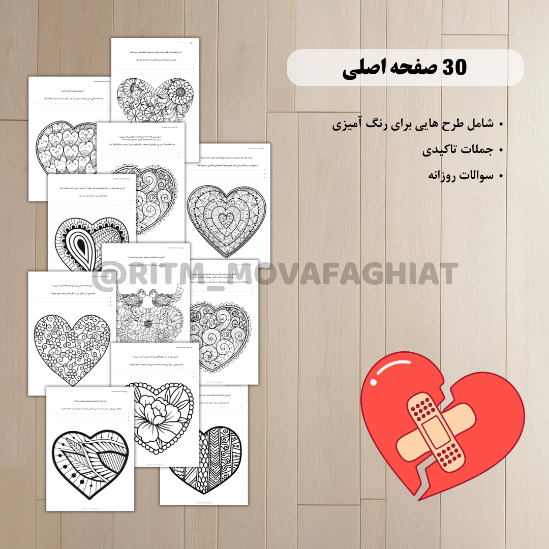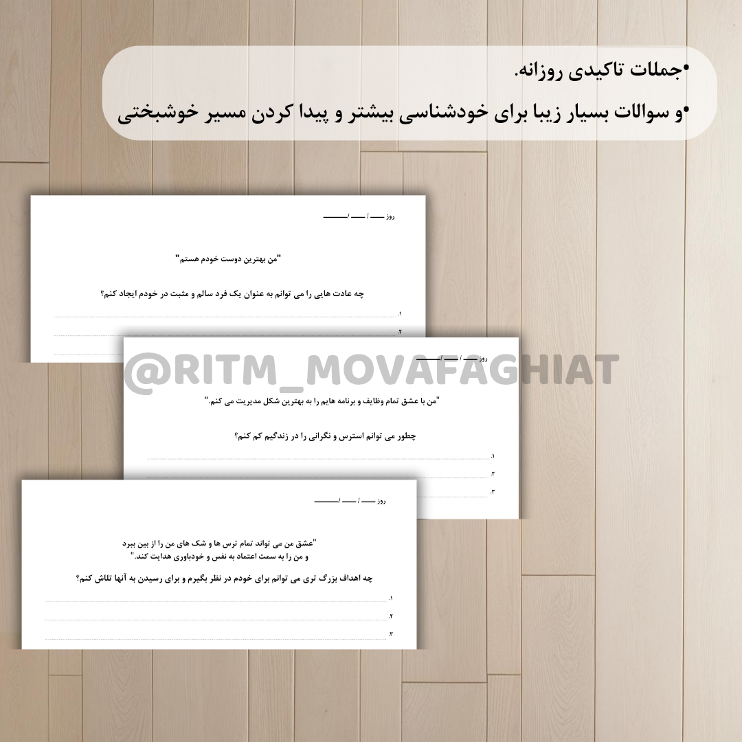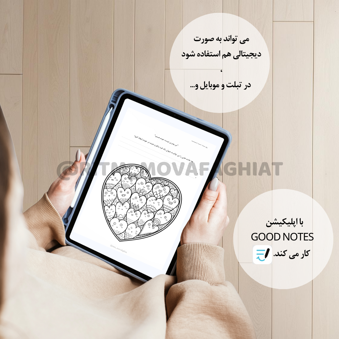 سه مزیت بزرگ این محصول: 1- (سوالات روزانه) برای خودشناسی و درک عمیق تر خودت هر روز یک سوال از تو پرسیده میشه. میتونی از پاسخ هایی که می نویسی به عنوان یک راهنما برای رسیدن به اهداف و رویاهات استفاده کنی. پس با دقت و صداقت جواب بده. 2- (جملات تاکیدی) که بهت احساس مثبت و امیدبخش میده. با تکرار این جملات میتونی انرژی عشق رو در خودت تجدید کنی و به یه زندگی پر از شادی، عشق و خوشبختی برسی. 3- (رنگ آمیزی ماندالا) که باعث کاهش استرس، تقویت تمرکز و آرامش ذهن میشه . اطلاعات بیشتر ⬇️