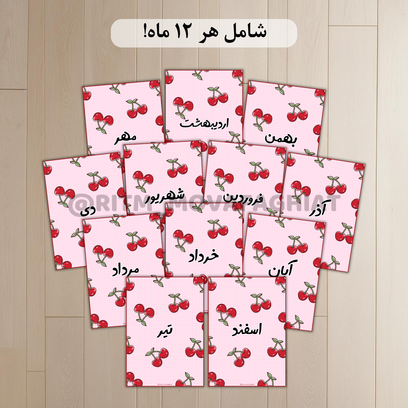 بسته ی صفحه عنوان گیلاس، از قبل رنگی، صفحات جلد بولت ژورنال ،شامل تمام 12ماه