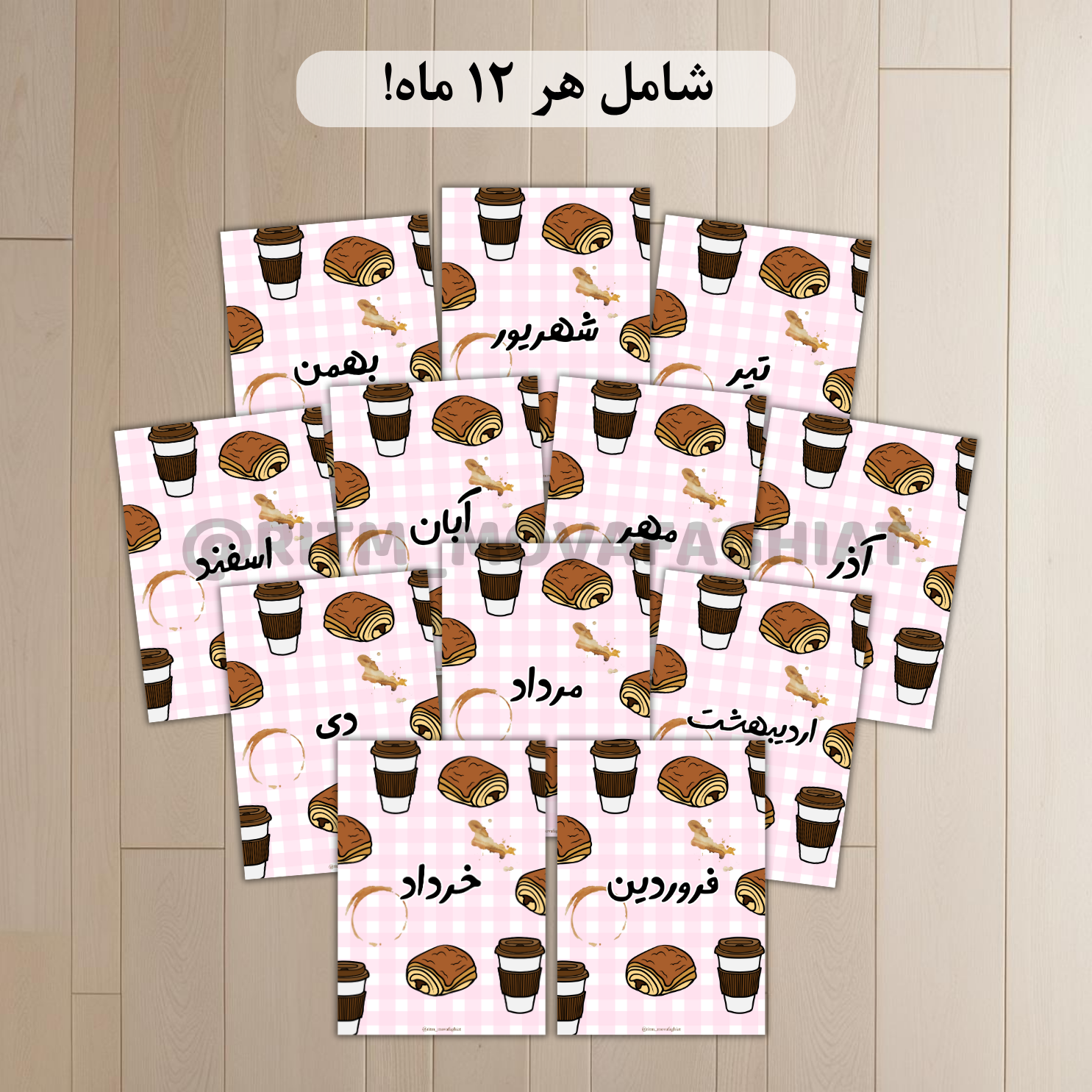 بسته ی صفحه عنوان coffee ☕، از قبل رنگی، صفحات جلد بولت ژورنال ،شامل تمام 12ماه