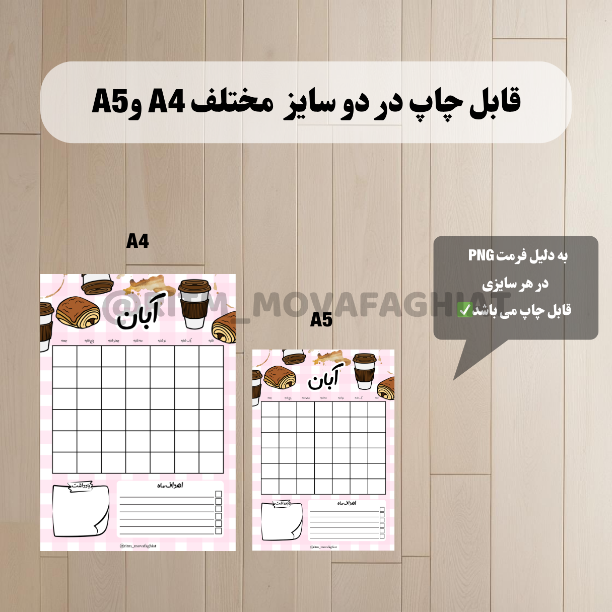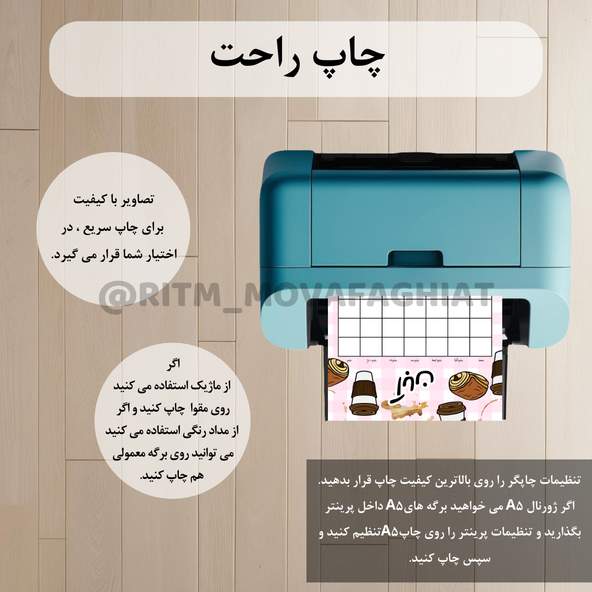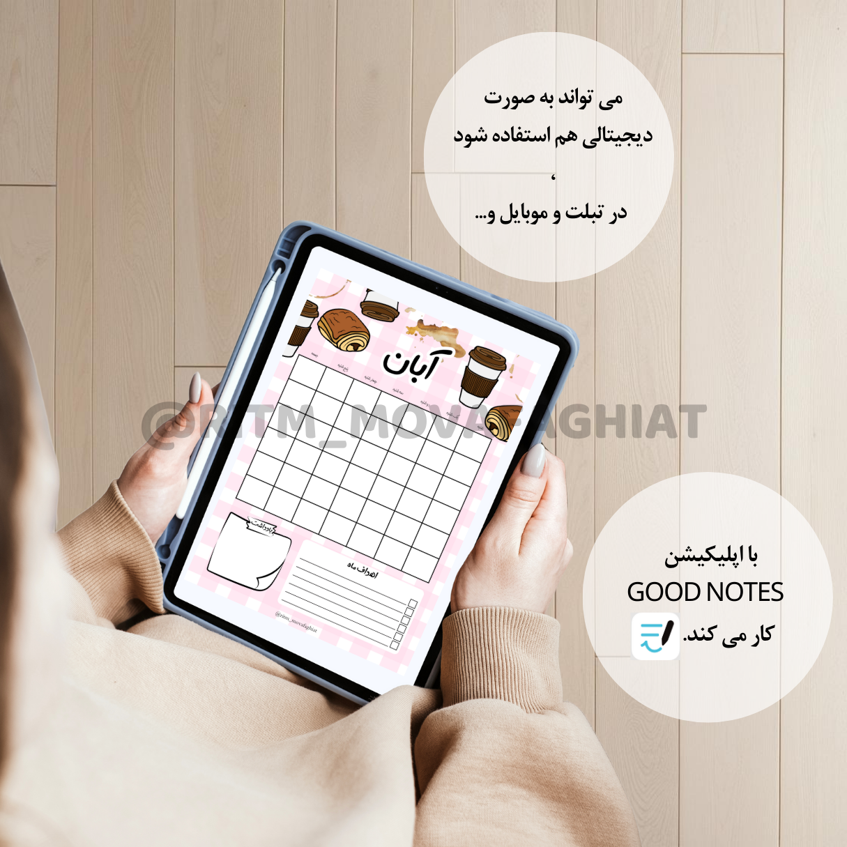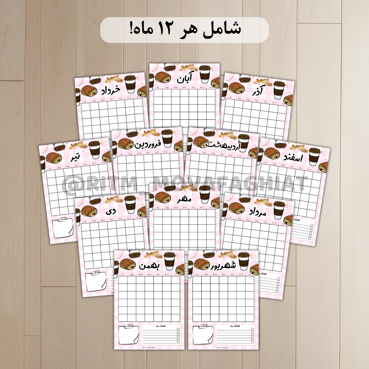 شامل همه ی ماه ها، تقویم قابل چاپ ، برای برنامه ریزی و هدف گذاری ماهانه،صفحات وظایف ماهانه
