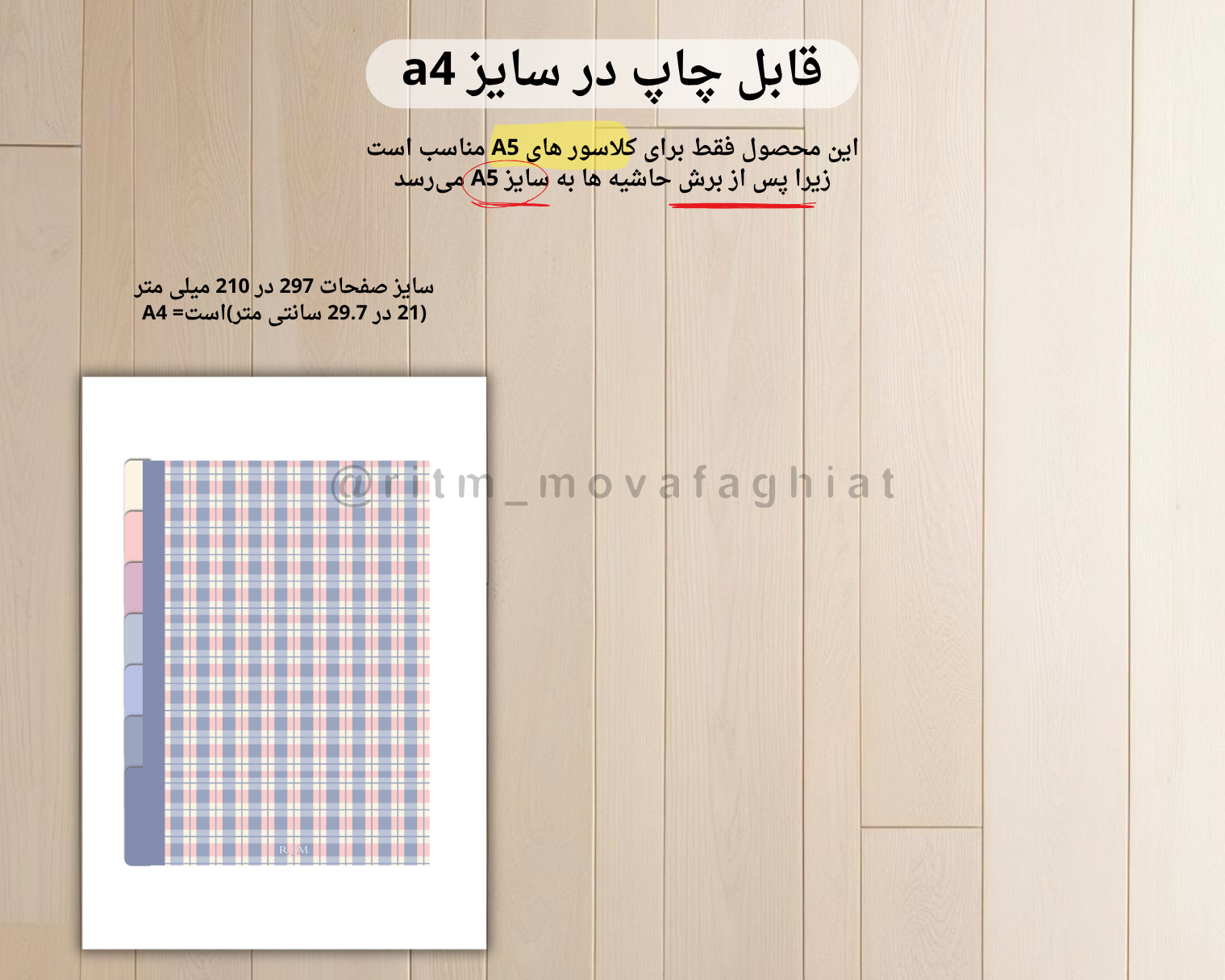 دیوایدر چیست: یک صفحه برای تقسیم و ساماندهی کلاسور شماست ، برای مثال با دیوایدر یا تقسیم کننده شما میتوانید هر بخش بولت ژورنال خودتان را از بخش دیگر جدا کنید. مهم: این محصول فقط برای کلاسور های A5 مناسب است. ⭕نحوه چاپ :داخل پرینتر مقوا یا کاغذ گلاسه در سایز A4 بگذارید، سپس در تنظیمات چاپگر ، چاپ درسایز A4 را انتخاب کنید. و پس از چاپ، دور تا دور دیوایدر را با قیچی یا کاتر برش دهید، در آخر با پانچ تک سوراخه ، دیوایدر ها را مناسب کلاسور خود سوراخ کنید و تمام.