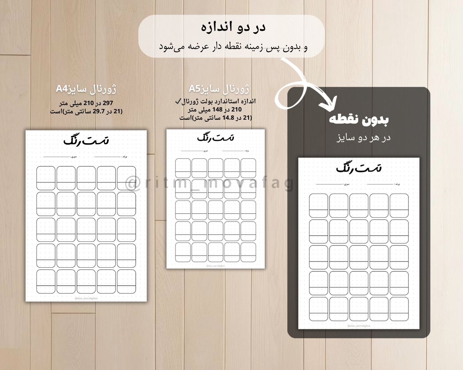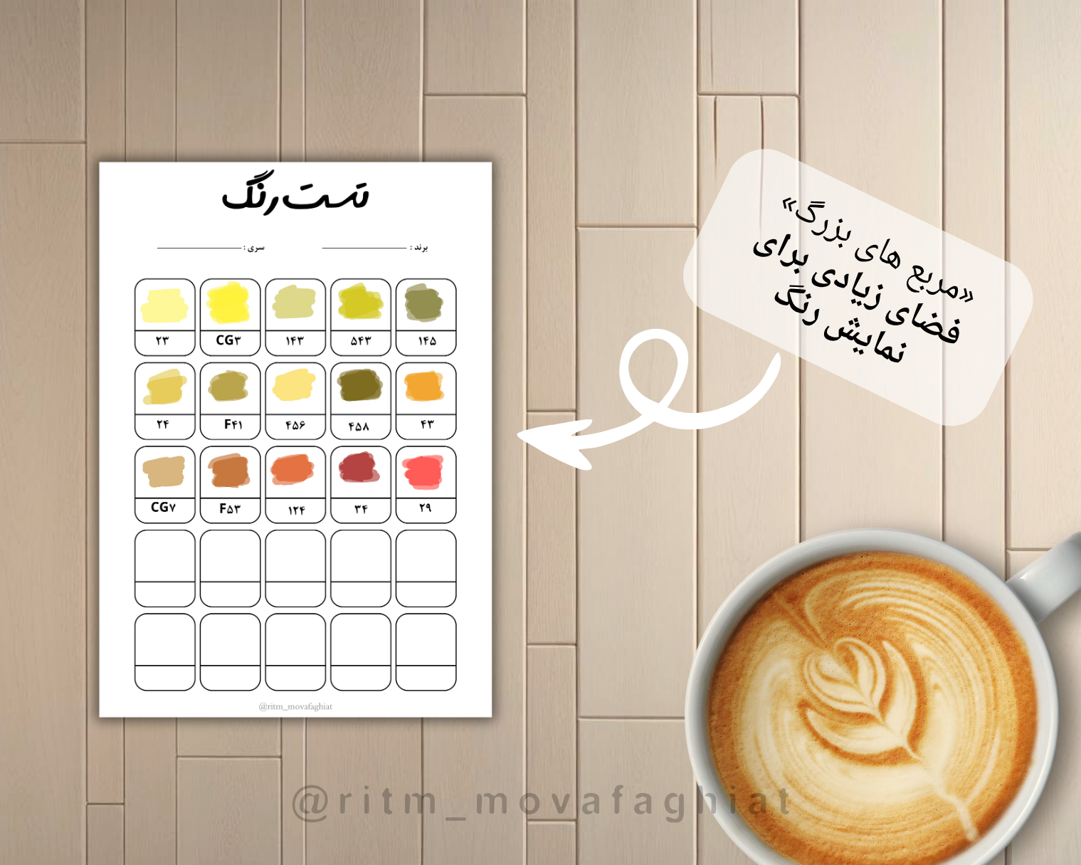 اگه از ماژیک برای بولت ژورنالتون استفاده میکنید ، و تعداد ماژیک های شما زیاده قطعا به این صفحات تست رنگ نیاز پیدا میکنید. تا کد و رنگ هر مارکر رو روی اون ثبت کنید و موقع رنگ آمیزی رنگ مورد نظرتون رو سریع و راحت پیدا کنید.🎨 چون در اغلب موارد رنگ مارکر از روی خودش مشخص نمیشه یا متفاوته و حتما باید قبل استفاده روی کاغذ بکشید و از اینکه رنگ مد نظر شماست مطمئن بشید.