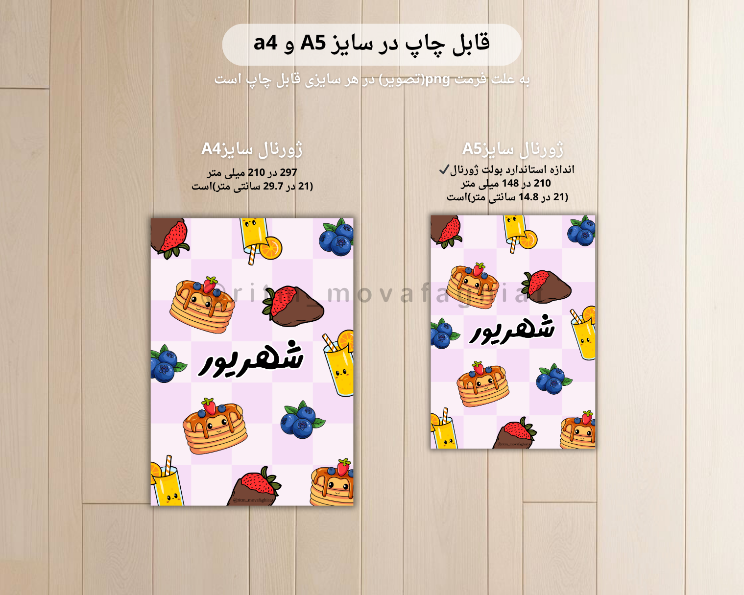 پک ژورنال شهریور ماه ، شامل ۱۰ صفحه از قبل رنگی شده با طرح پنکیک می باشد. با تهیه ی {صفحات عنوان ماهِ} و {صفحات ماه نگار} همین طرح ، می توانید آن را تا پایان سال ،هر ماه مجدد چاپ کنید ، 📑 دقت بفرمائید این محصول فایل دانلودی ژورنال می باشد و قابل چاپ است ، محصول فیزیکی نیست. اطلاعات بیشتر راجع به ژورنال⬇️