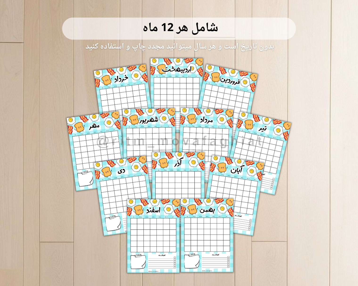 شامل همه ماه ها، تقویم قابل چاپ ، برای برنامه ریزی و هدف گذاری ماهانه،صفحات وظایف ماهانه