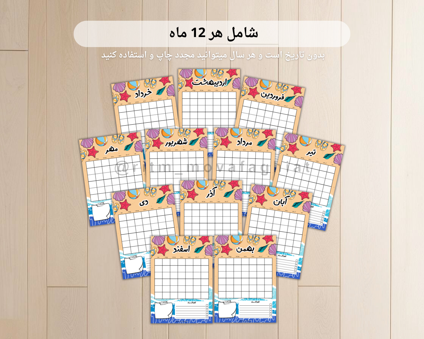 شامل همه ماه ها، تقویم قابل چاپ ، برای برنامه ریزی و هدف گذاری ماهانه،صفحات وظایف ماهانه