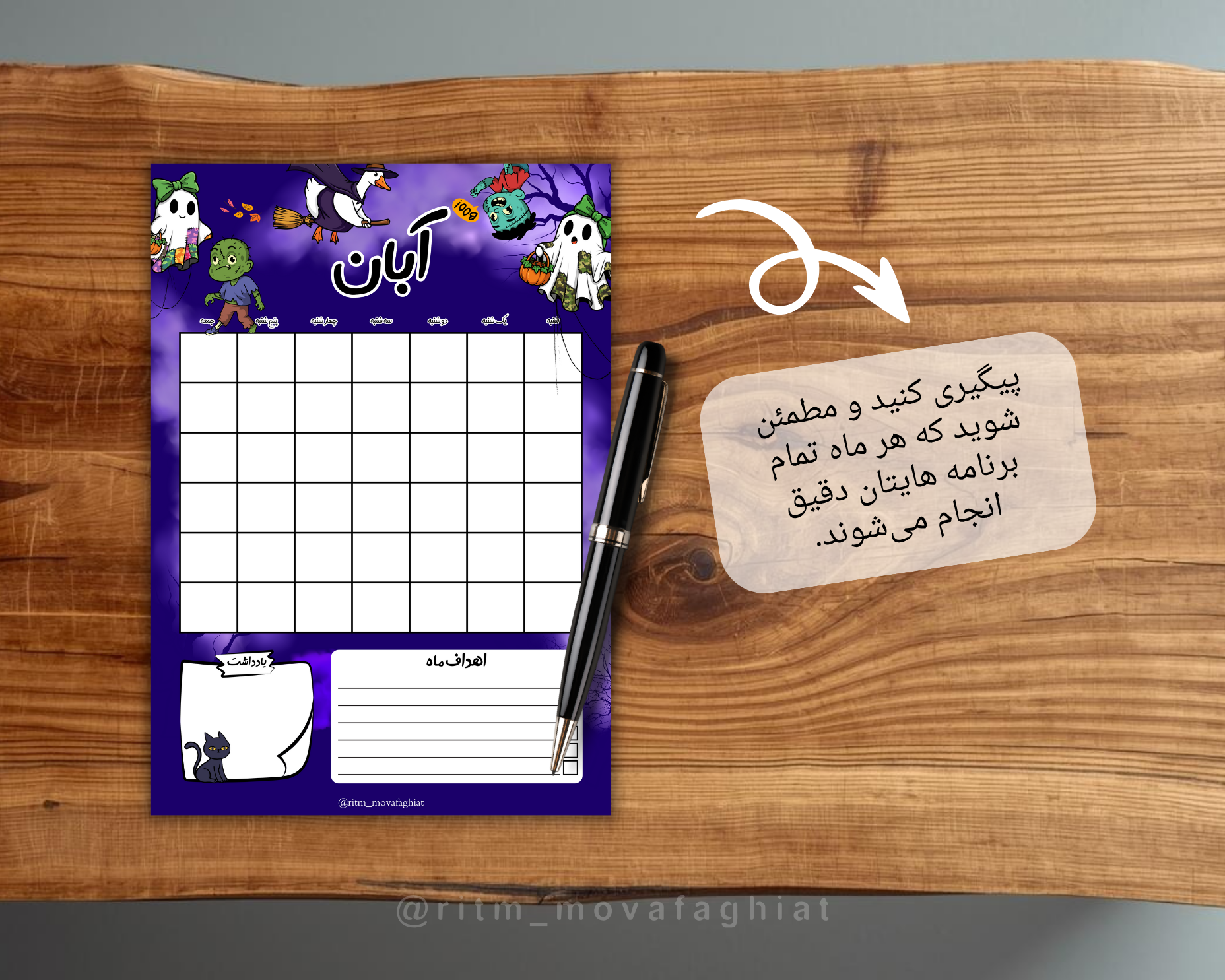 «Boo!» صدای روحهاست وقتی میخوان کسی رو بترسونن! ~ پک ژورنال مناسب آبان ماه ، شامل 11 صفحه از قبل رنگی شده با طرح ارواح و اردک های جادوگر! با تهیه ی بسته {تقویم و عنوان ماه ها} همین طرح ، می توانید آن را تا پایان سال ،هر ماه مجدد چاپ کنید ، 📑