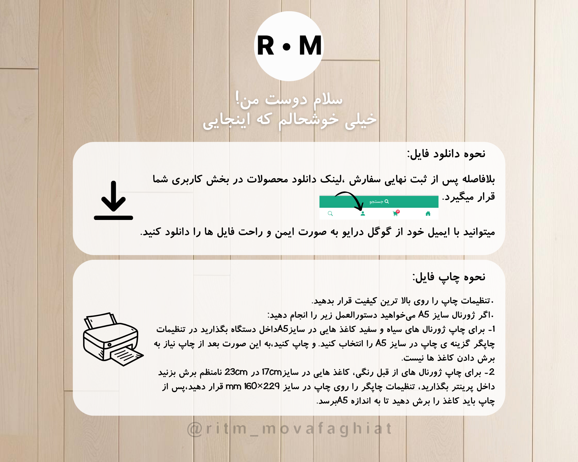 دقت بفرمایید دفتر چاپ شده فیزیکی برای شما ارسال نمی شود.*اینها صفحات قابل چاپ هستند که میتوانید هر چند بار که بخواهید چاپ کنید!*