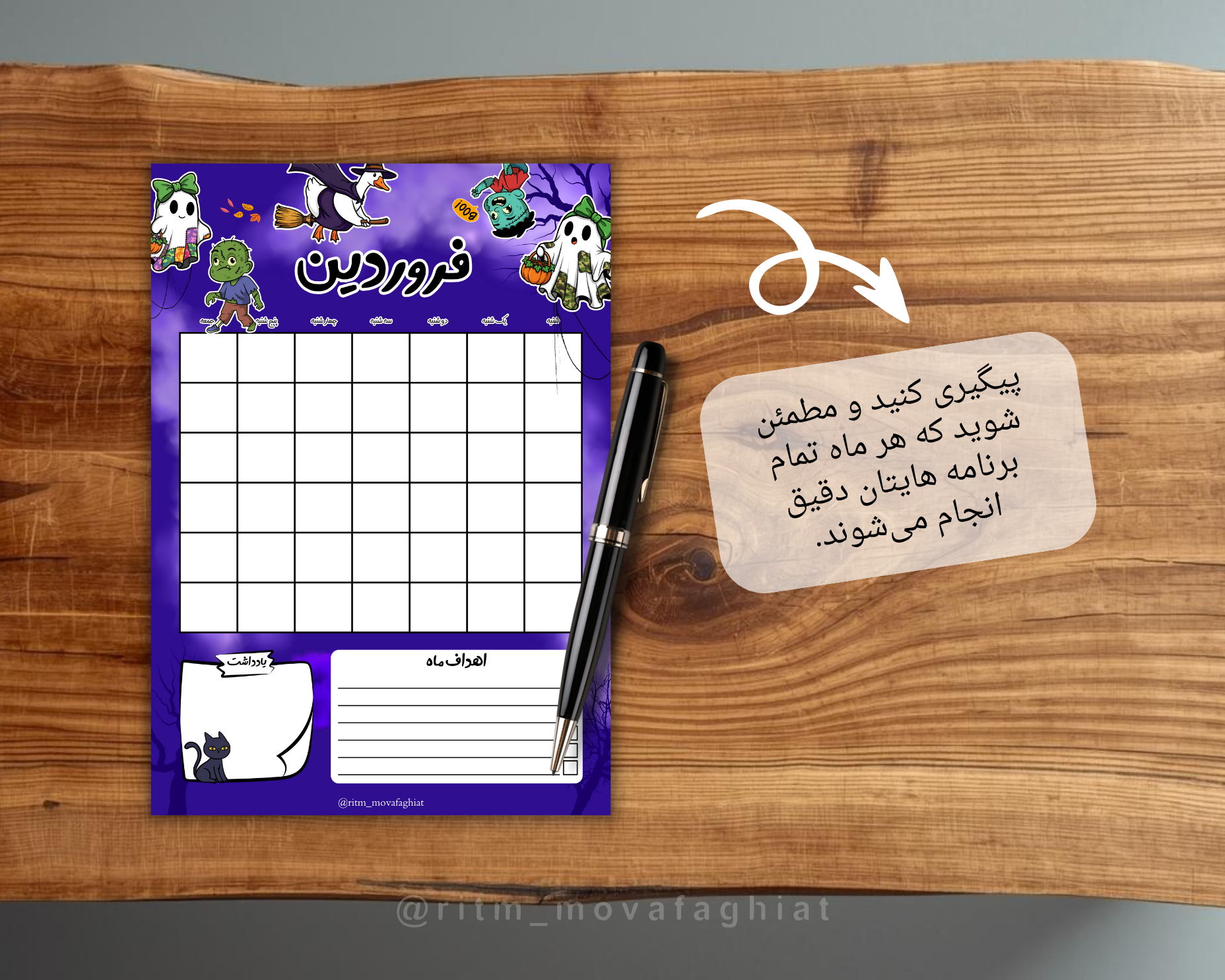 اهداف ماهانه: اهدافی که می‌خواهید در این ماه به آنها برسید، مانند شروع یک ورزش جدید، خواندن یک کتاب خاص، یا یادگیری یک مهارت جدید.