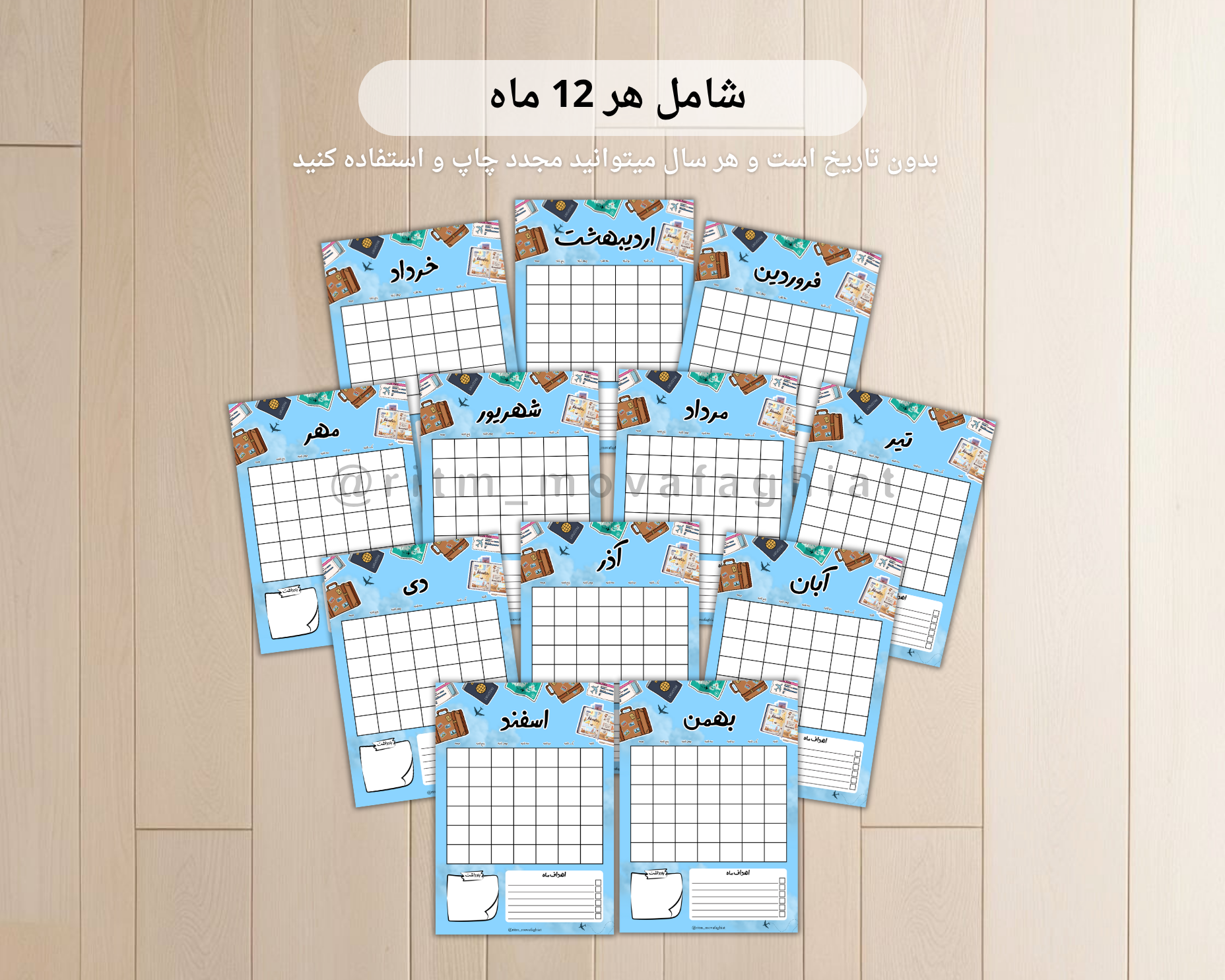 شامل همه ماه ها، تقویم قابل چاپ ، برای برنامه ریزی و هدف گذاری ماهانه،صفحات وظایف ماهانه