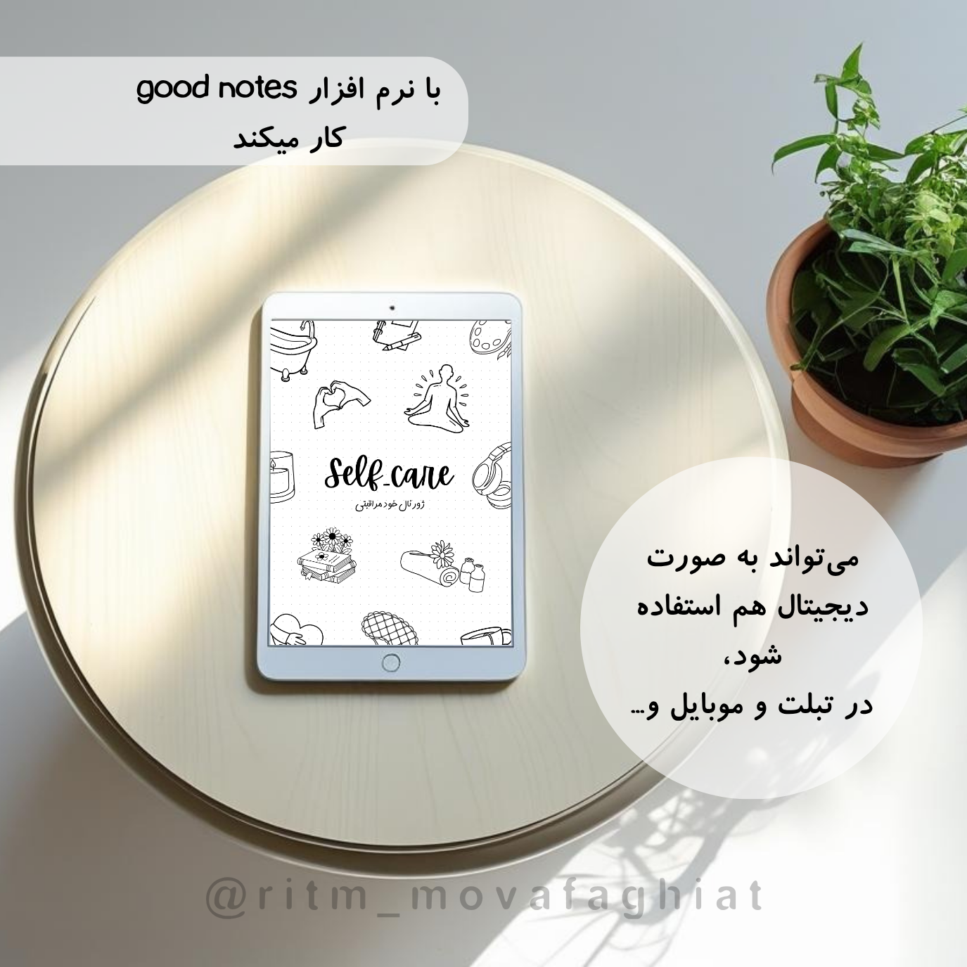 گاهی لازمه در کنار مرتب کردن و رسیدگی به فضای اطرافمون، مثل اتاق یا خونه یا محل کار و... ، سَری به دنیای درونمون هم بزنیم . بعضی از ما اینقدر سرگرم کار های روزمره میشیم ، که خودمون رو فراموش میکنیم! یادمون میره همین تن، که داره از صبح تا شب برای رسیدن به هدف هامون تلاش میکنه هم نیاز به استراحت و مراقبت داره🥀. ژورنال «self care» ، هدفش همینه، که بهانه ای باشه تا سعی کنیم کمی به جسم ، ذهن و روحمون هم رسیدنی کنیم و فارغ از دنیای رقابتی بیرون ، یکم آرامش، به خودمون هدیه بدیم.🌱